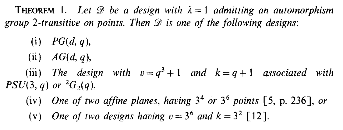 - The flag-transitive linear space has be classified in buekenhoutLinearSpacesFlagtransitive1990.