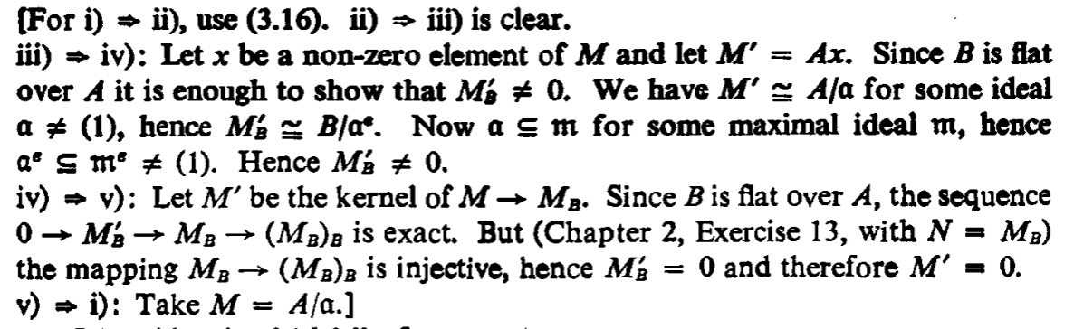 iii)→iv) Let be a non-zero element of and let . Then there is an injective map . Since is flat over , the map is also injective. Thus, it is enough to show that .