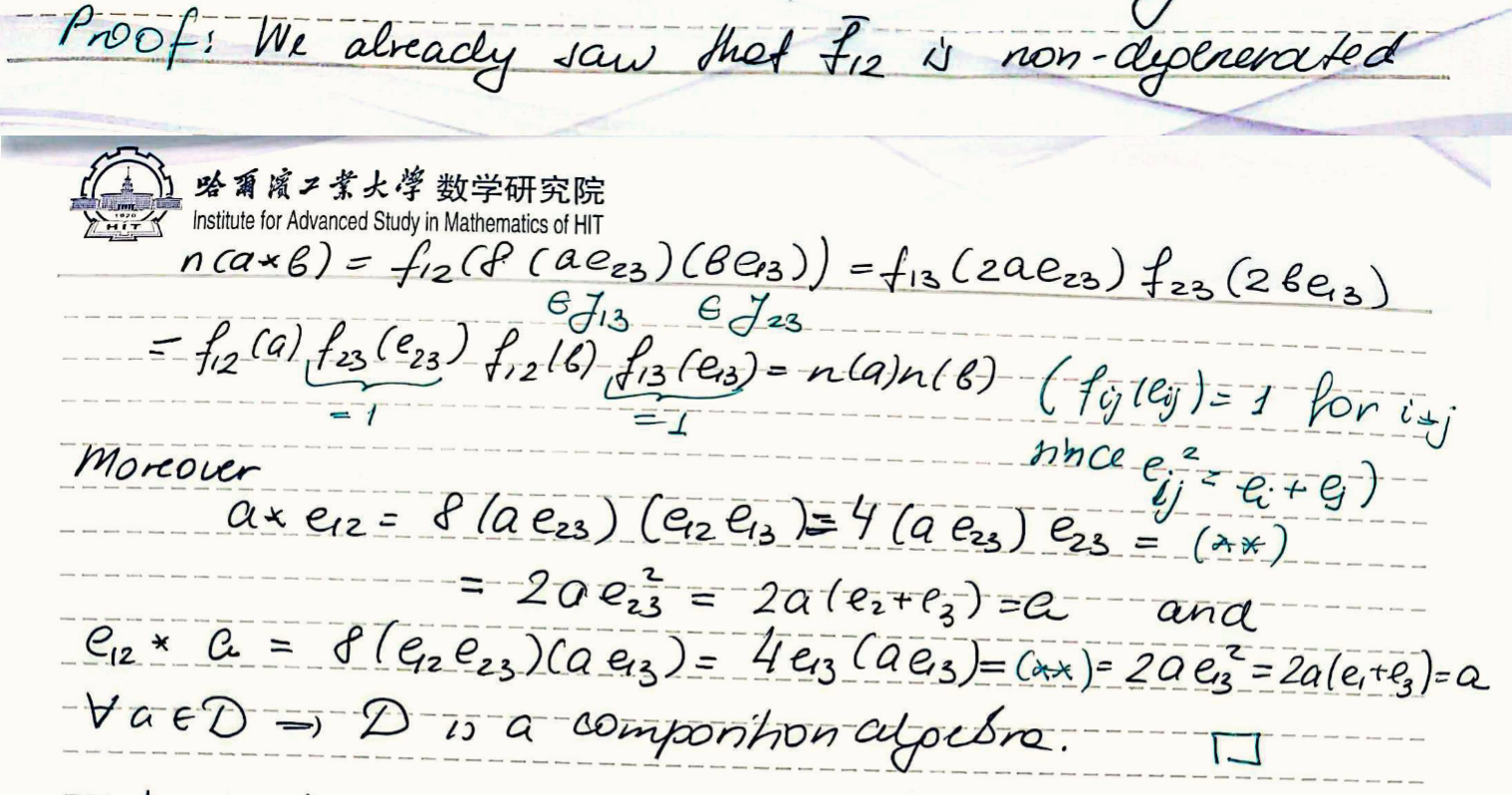 We have shown that is a composition algebra with unit element and quadratic form . Next, we will show that for all .