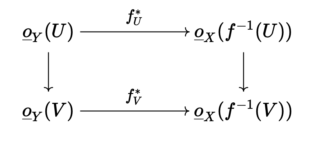• a morphism of rings between sheaves : for any , the following diagram commutes