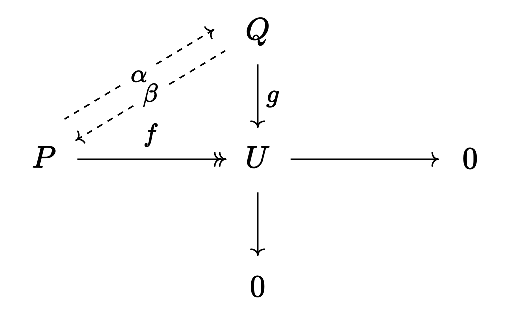 Since is projective, there exists a lift such that the following diagram commutes by ^9f21f9.
