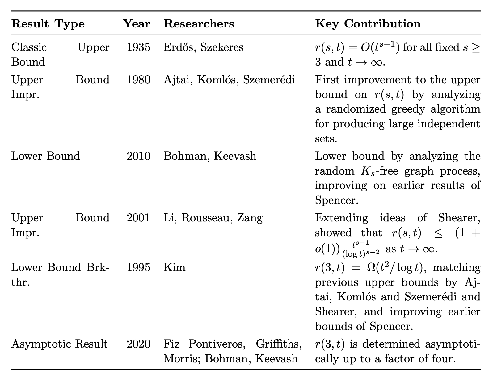Reference table for off-diagonal Ramsey bounds (compiled by lyh).
