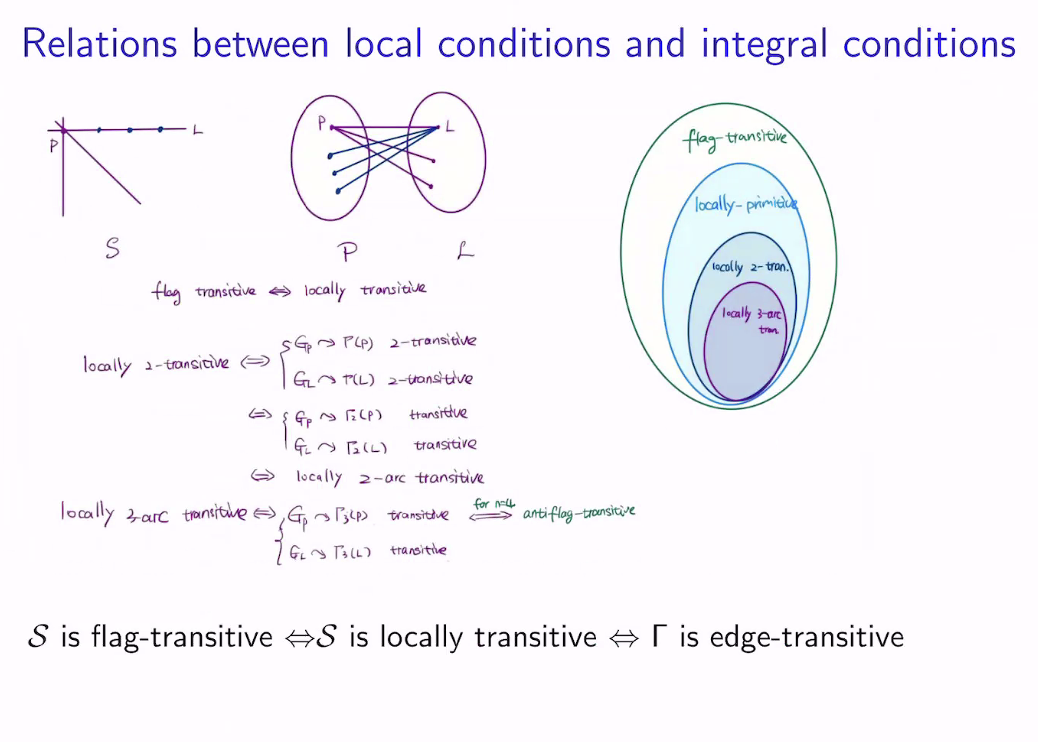 is flag-transitive (antiflag-transitive), if it has an automorphism group such that acts transitively on all flags (antiflags) of .