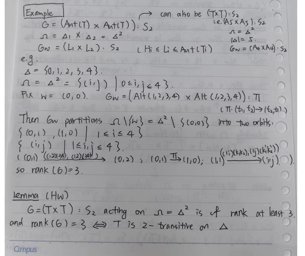 Remark. Suppose . Then acting on is transitive and imprimitive, of rank :