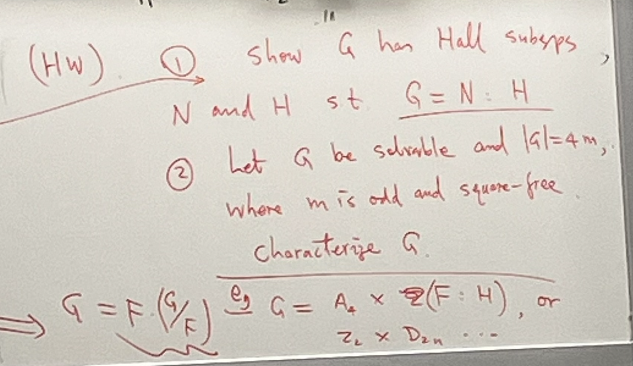 Example. Let be a group such that each Sylow subgroup is cyclic. Then is solvable. Further, is metacyclic, i.e., is cyclic and is cyclic.
