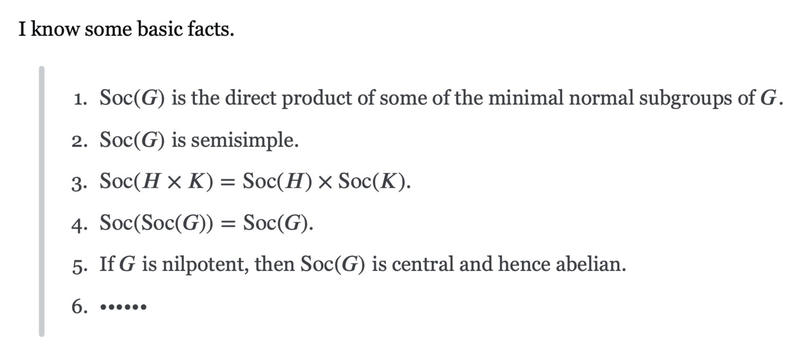 \begin{proof}Note that any different minimal normal subgroups intersects trivially, see here. Then by Minimal Normal Subgroup and Maximal Normal Subgroup the socle is a direct product of simple groups.\end{proof}Link to original