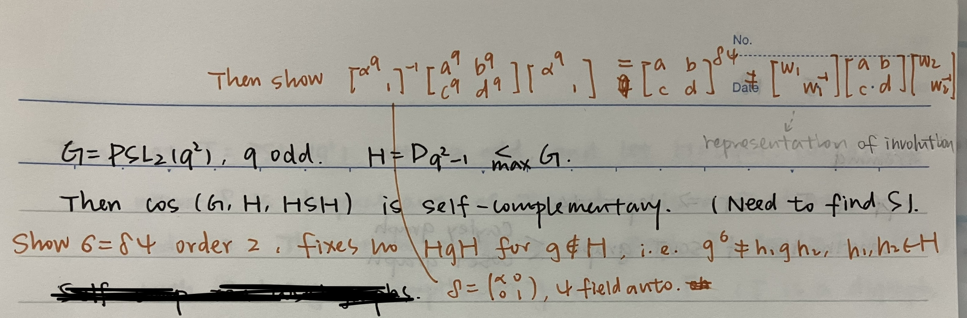 Thm. Let with odd, and let . Let where is a diagonal automorphism of and is a field automorphism of order . Then there exists a SC graph with being a complementing isomorphism of and is not undirected.