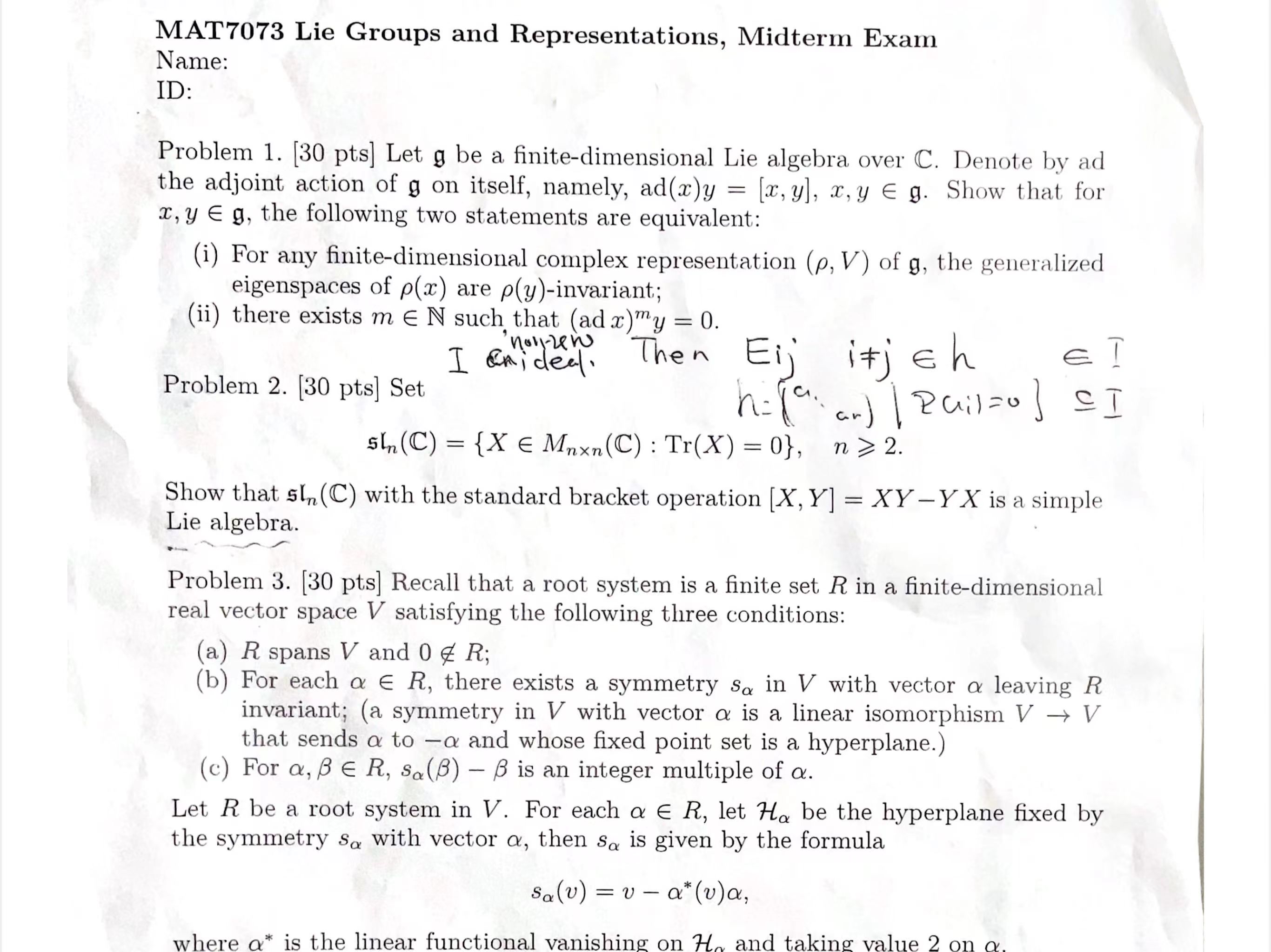 Q2. Let be a finite dimensional complex Lie algebra and .