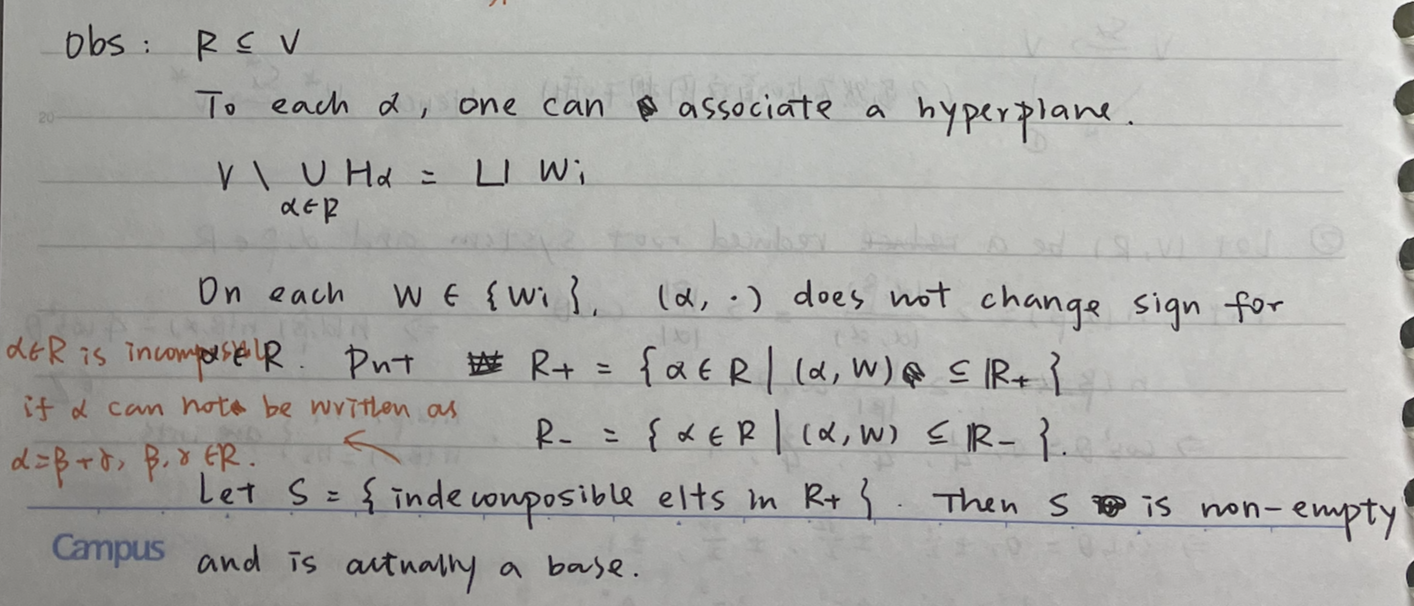 Let be a reduced root system. Then there exists a subset consisting of elements, s.t. every element of is a linear combination of elements of with coefficients either all in or all in . Such a subset is called a base or fundamental system or simple root system of and