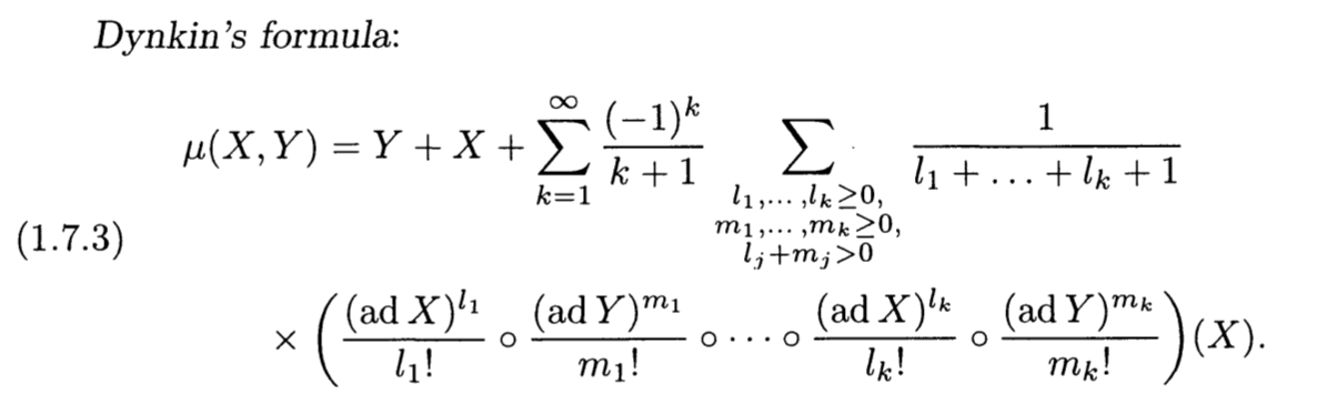 Rmk. Dynkin’s formula tells that the product of near is determined by the bracket structure of the Lie algebra.
