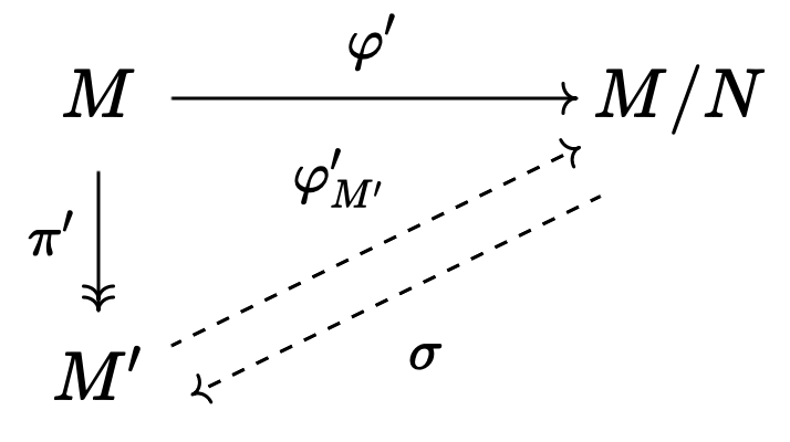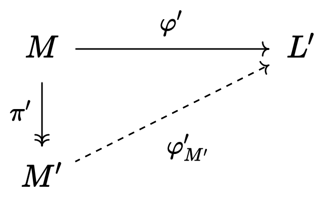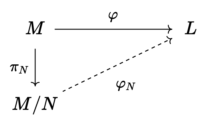 Let be an -module, and let be an submodule of . Let be an -module and a morphism such that . Then there exists a unique morphism such that the following diagram commutes.